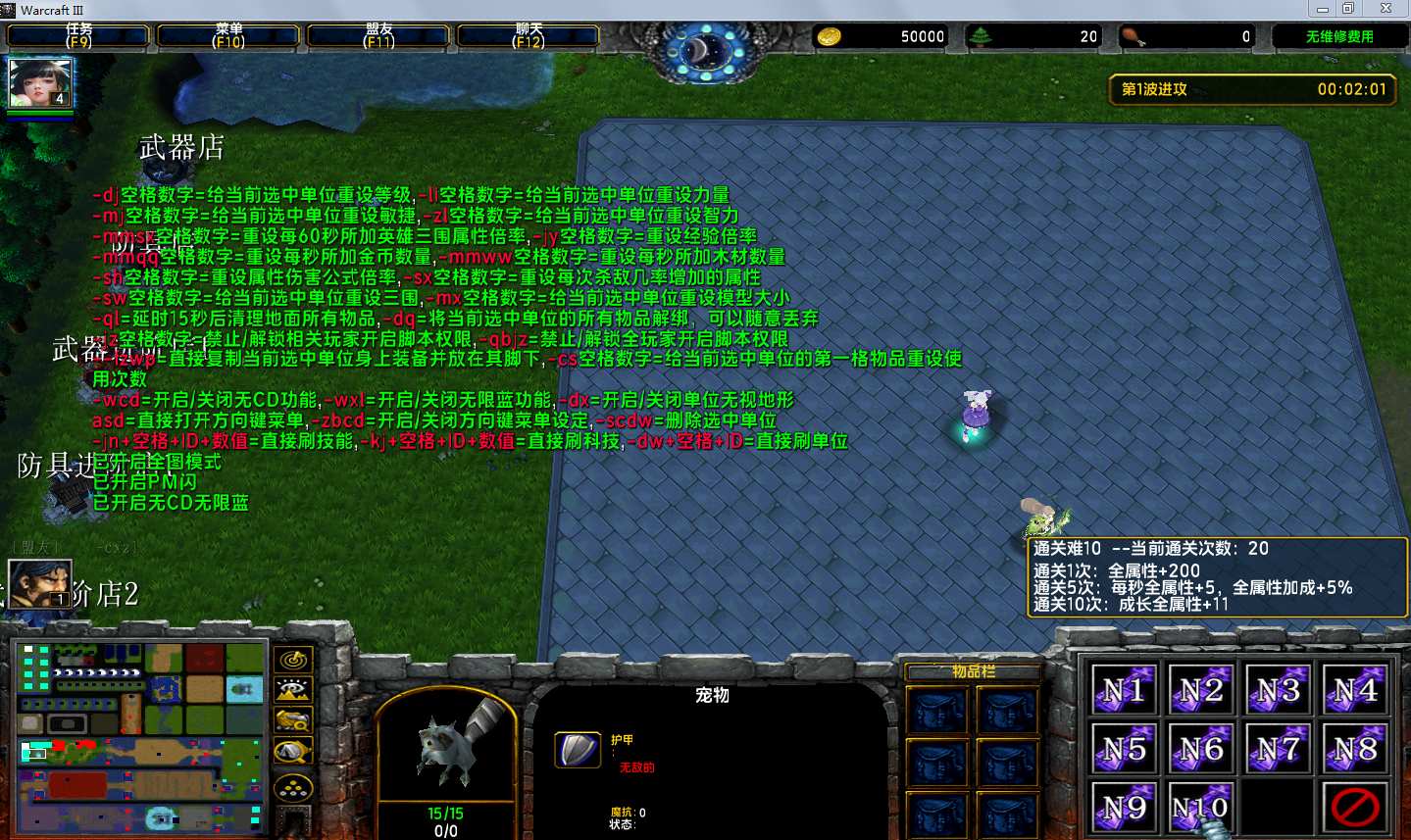 地图名字:次元之争4 1.1.3地图下载+全商城特权+全存档+隐藏英雄+无CD+指令功能