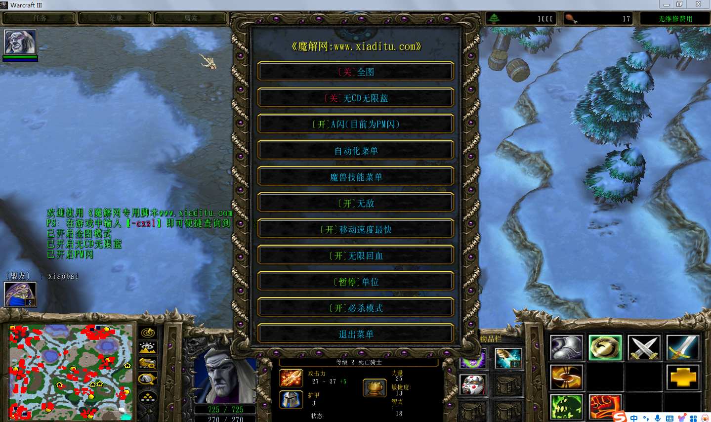 | 技能菜单【光环类技能】 | 自动化菜单【自动加钱木,提升英雄三围】 |