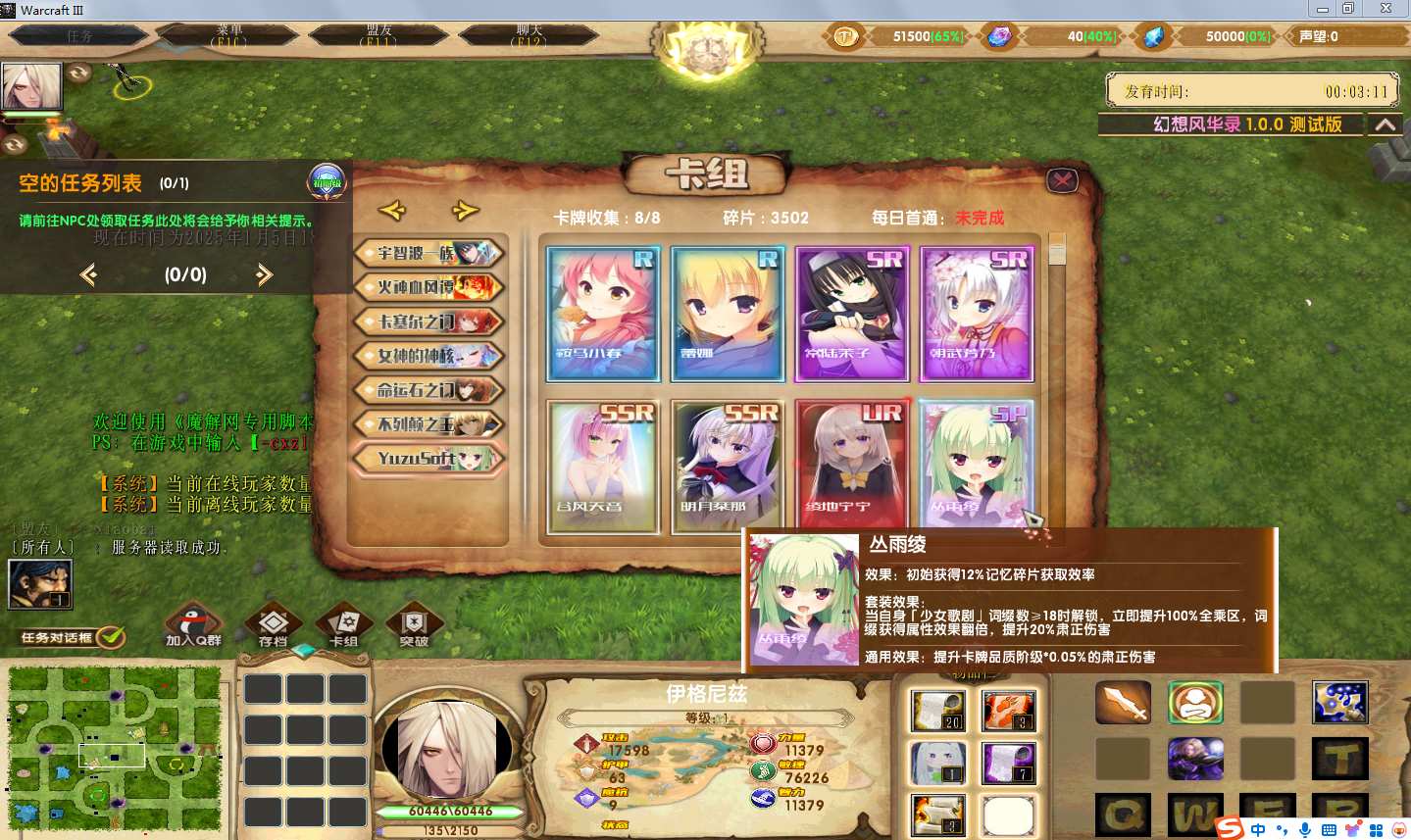 地图名字:幻想风华录1.9.83地图下载+全商城特权+全存档+无CD+指令功能