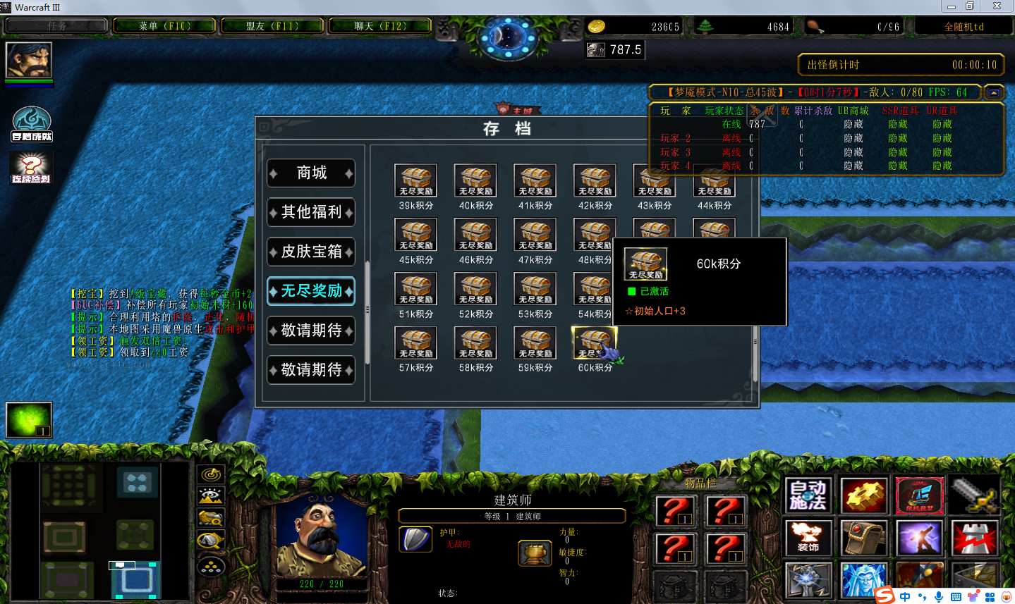 地图名字:全随机TD1.0.106地图下载+全商城特权+全存档+无CD+指令功能