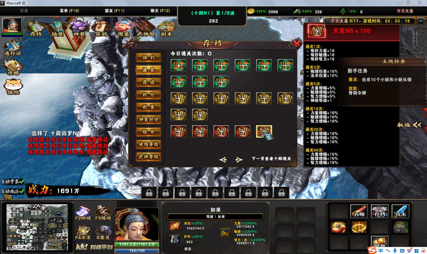 地图名字:齐天大圣1.0.89地图下载+全商城特权+全存档+隐藏英雄+无CD+指令功能