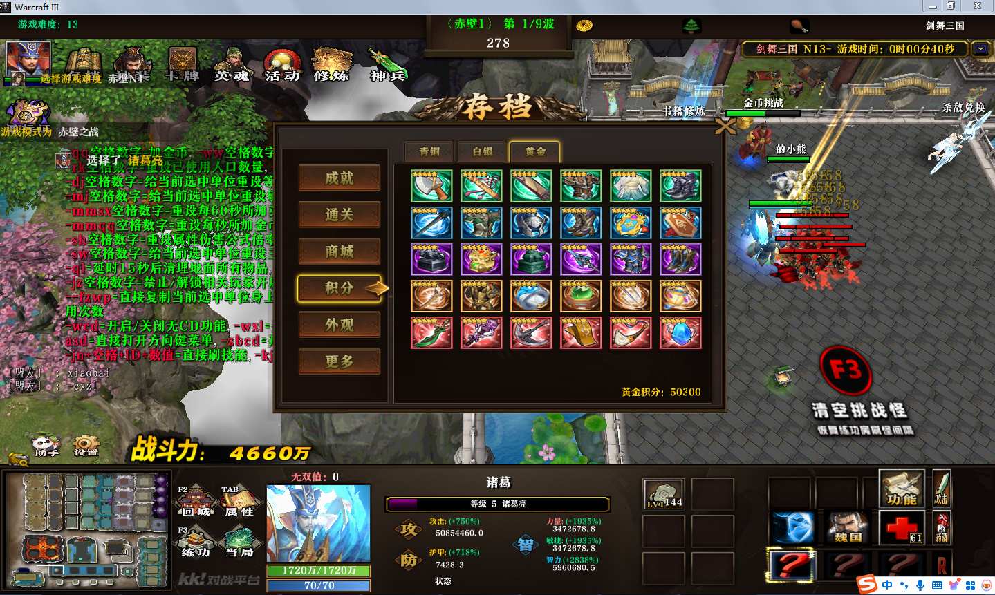 地图名字:剑舞三国1.0.78地图下载+全商城特权+全存档+隐藏英雄+无CD+指令功能