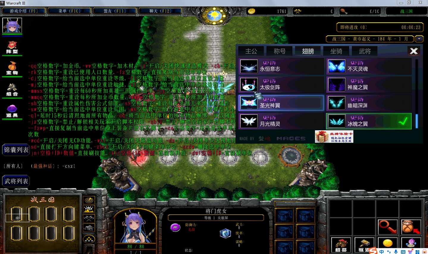 地图名字:战三国5.7.23地图下载+全商城特权+全存档+无CD+指令功能