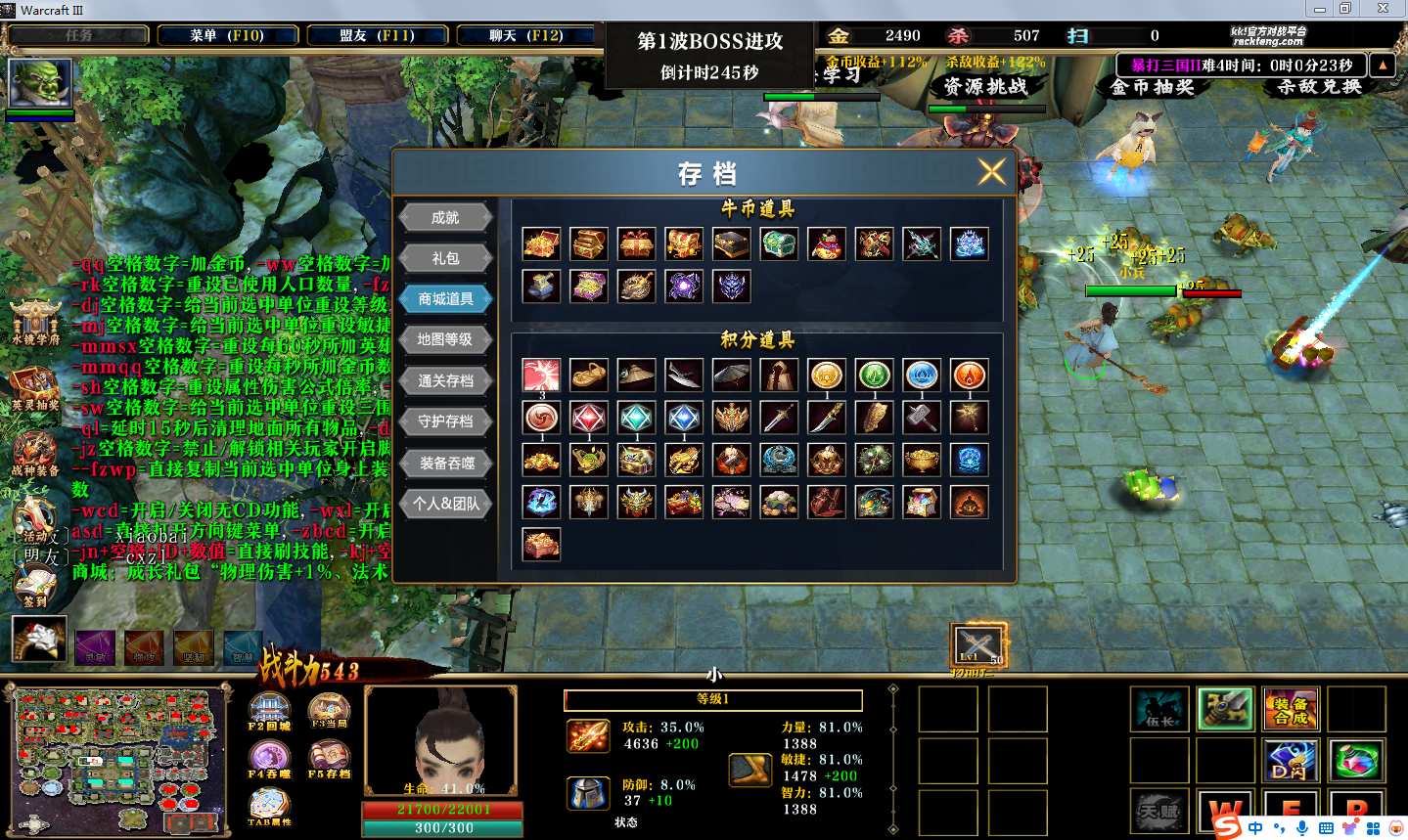 | 技能菜单【光环类技能】 | 自动化菜单【自动加钱木,提升英雄三围】 |