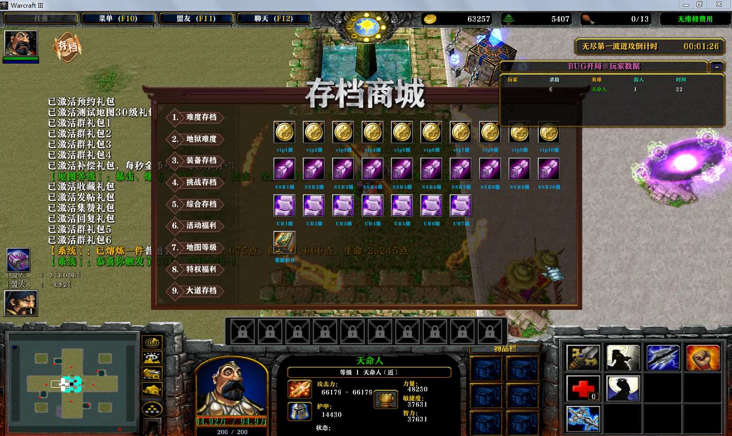 地图名字:BUG开局1.2.126地图下载+全商城特权+全存档+无CD+指令功能