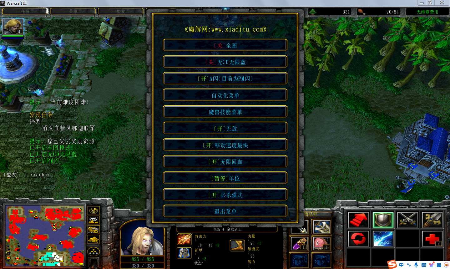 | 技能菜单【光环类技能】 | 自动化菜单【自动加钱木,提升英雄三围】 |