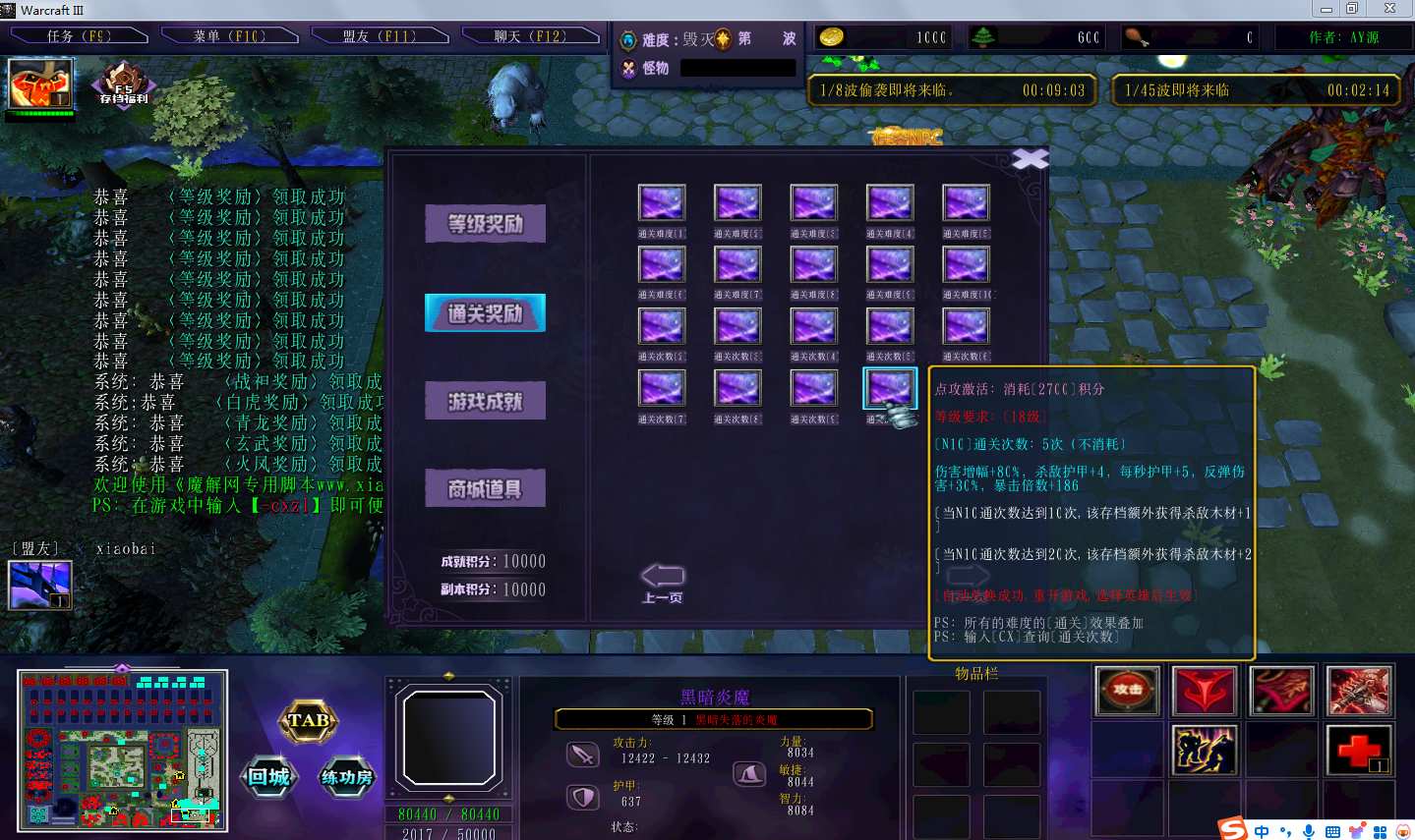 地图名字:邪恶源头二-1.0.27地图下载+全商城特权+全存档+隐藏英雄+无CD+指令功能