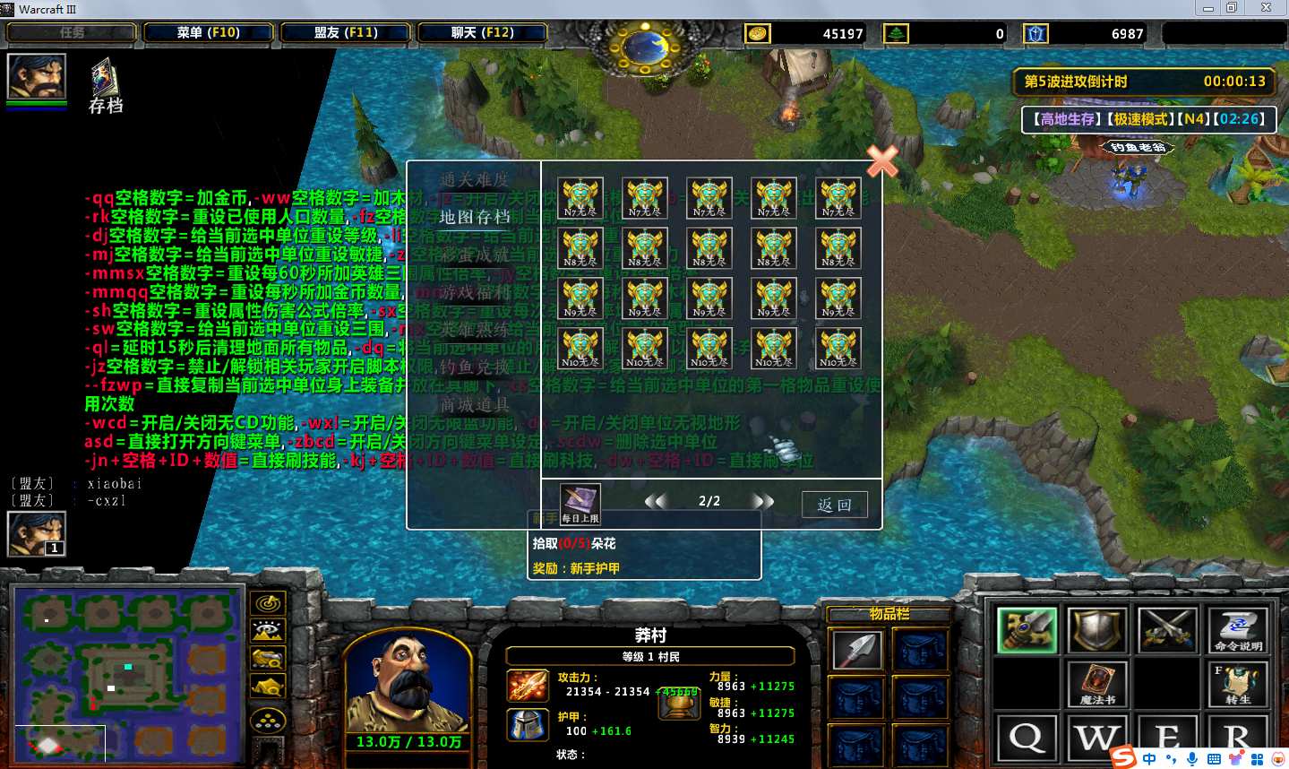 地图名字:高地生存1.0.27地图下载+全商城特权+全存档+隐藏英雄+无CD+指令功能