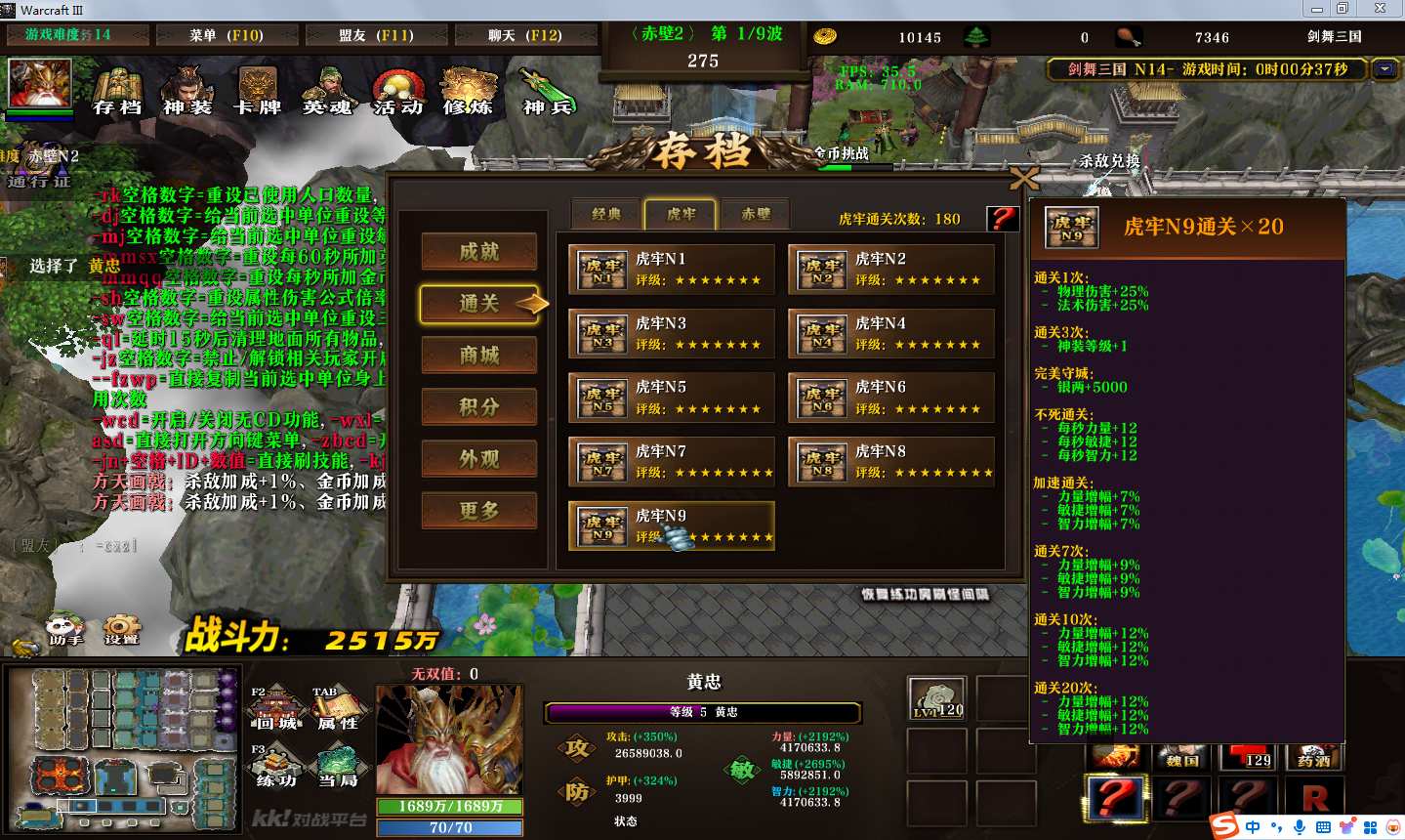 地图名字:剑舞三国1.0.84地图下载+全商城特权+全存档+隐藏英雄+无CD+指令功能