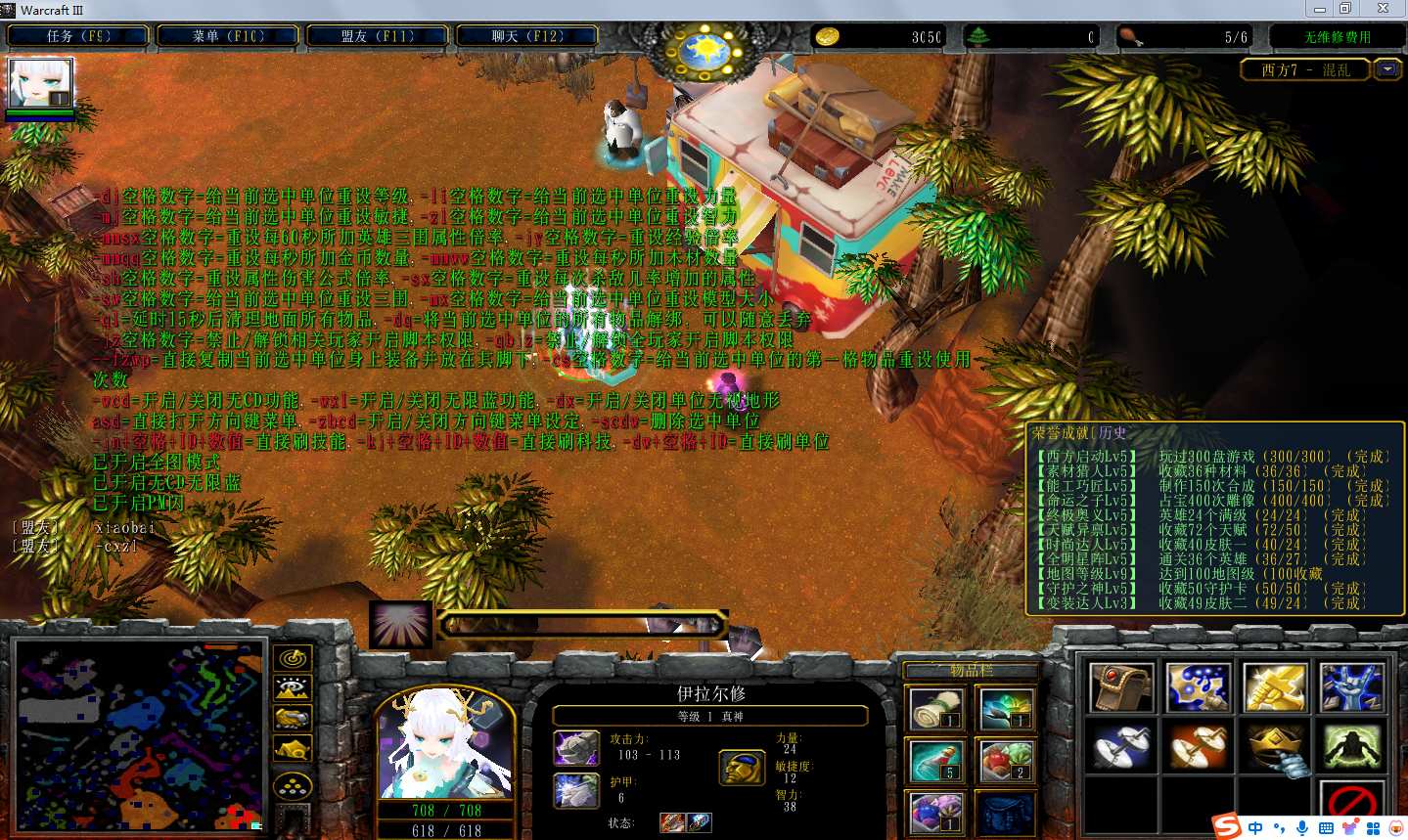 地图名字:西方世界的劫难7 1.9.5地图下载+全商城特权+全存档+隐藏英雄+无CD+指令功能