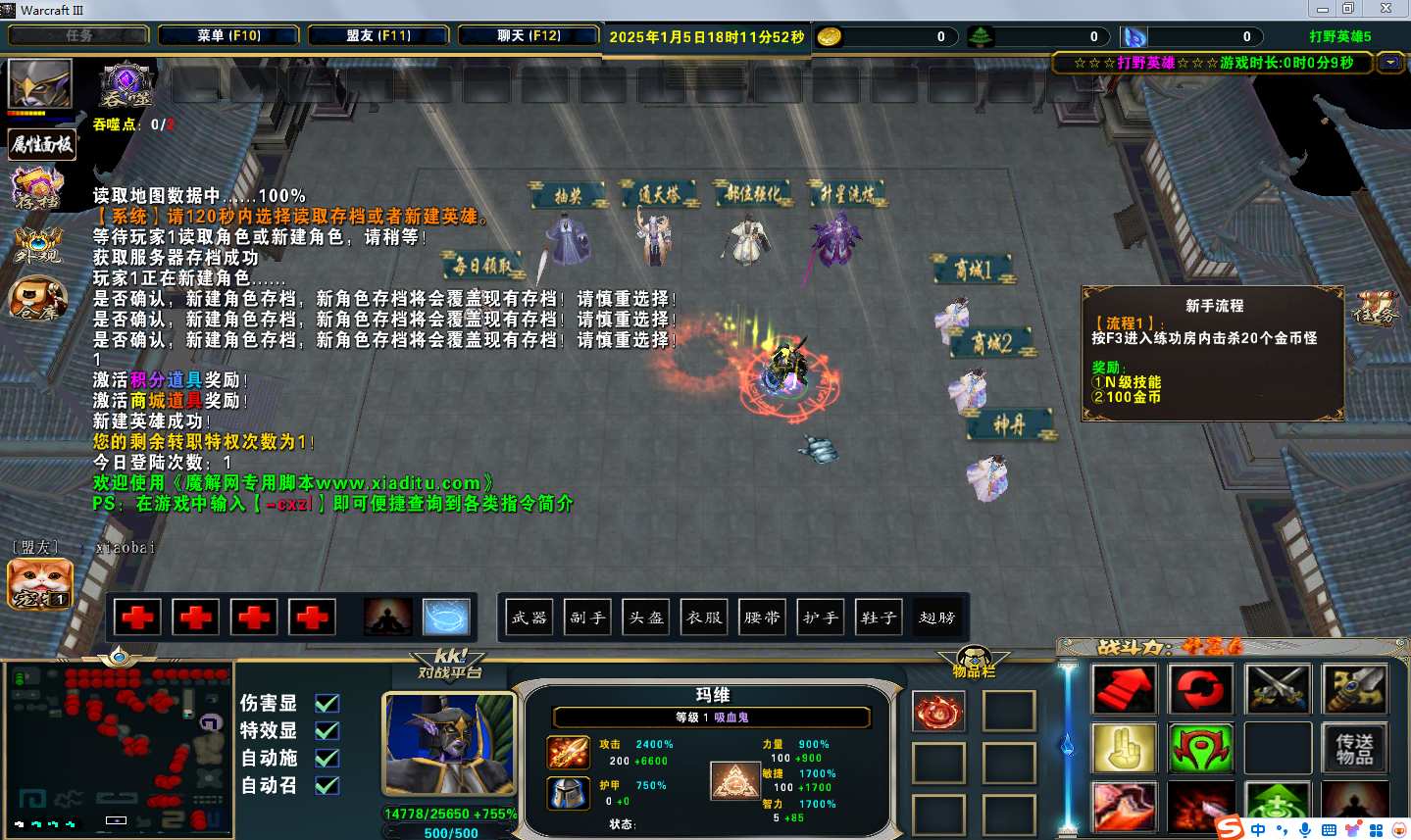 | 技能菜单【光环类技能】 | 自动化菜单【自动加钱木,提升英雄三围】 |