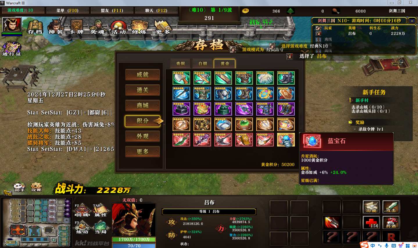 地图名字:剑舞三国1.0.87地图下载+全商城特权+全存档+隐藏英雄+无CD+指令功能