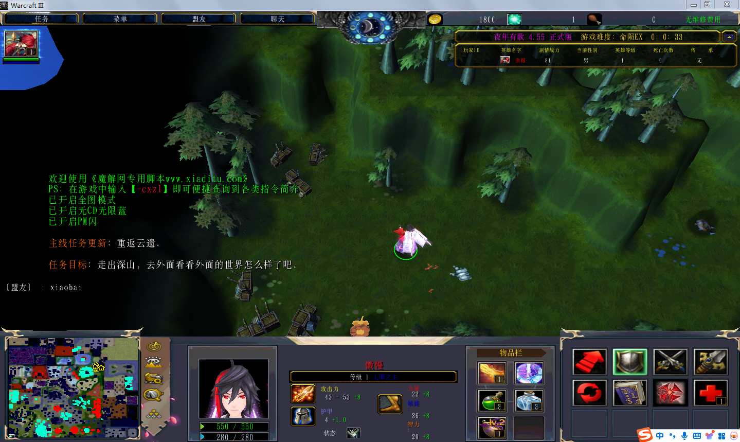 地图名字:夜年有歌4.5.5地图下载+全商城特权+全存档+隐藏英雄+无CD+指令功能
