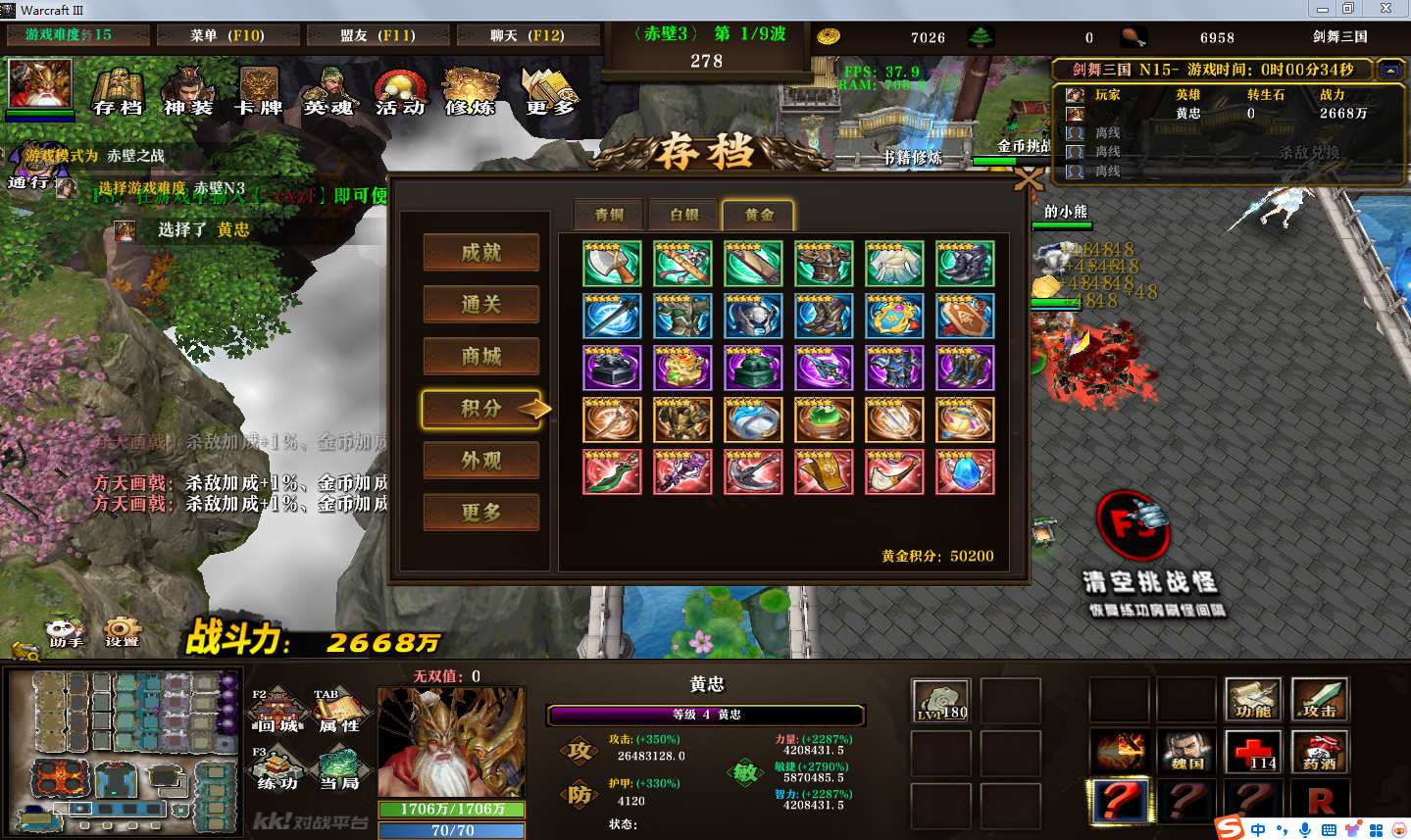 地图名字:剑舞三国1.3.9地图下载+全商城特权+全存档+隐藏英雄+无CD+指令功能