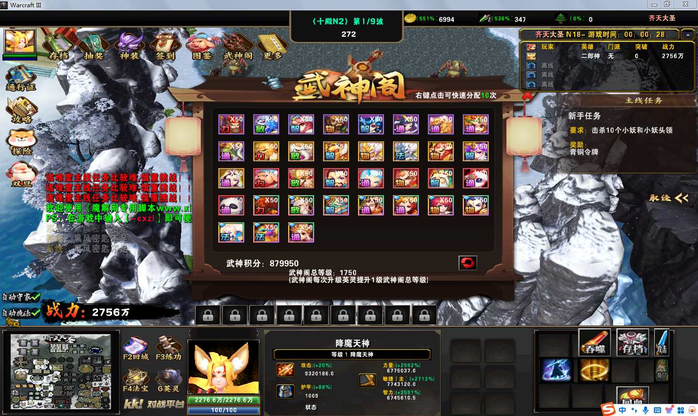 地图名字:齐天大圣1.0.101地图下载+全商城特权+全存档+隐藏英雄+无CD+指令功能