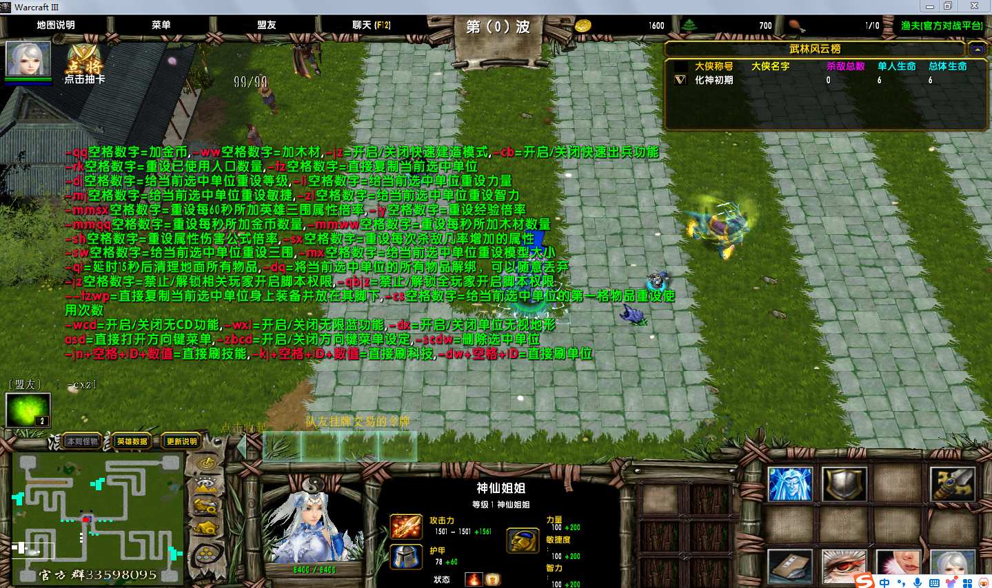 地图名字:混乱武林III苍山负雪4.8.209地图下载+全商城特权+全存档+隐藏英雄+无CD+指令功能