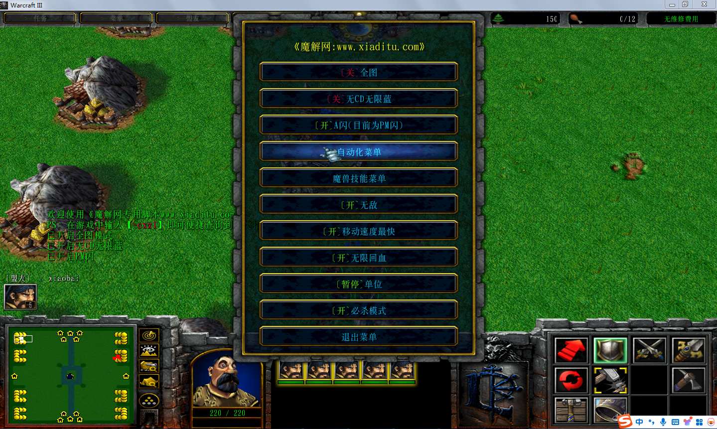 | 技能菜单【光环类技能】 | 自动化菜单【自动加钱木,提升英雄三围】 |