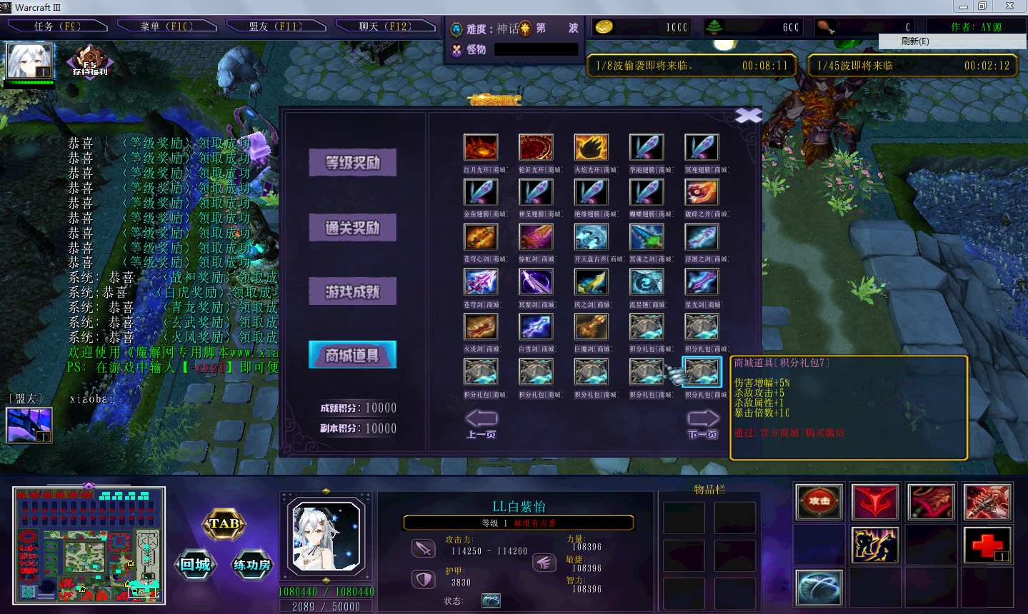 地图名字:邪恶源头二1.0.33地图下载+全商城特权+全存档+隐藏英雄+无CD+指令功能