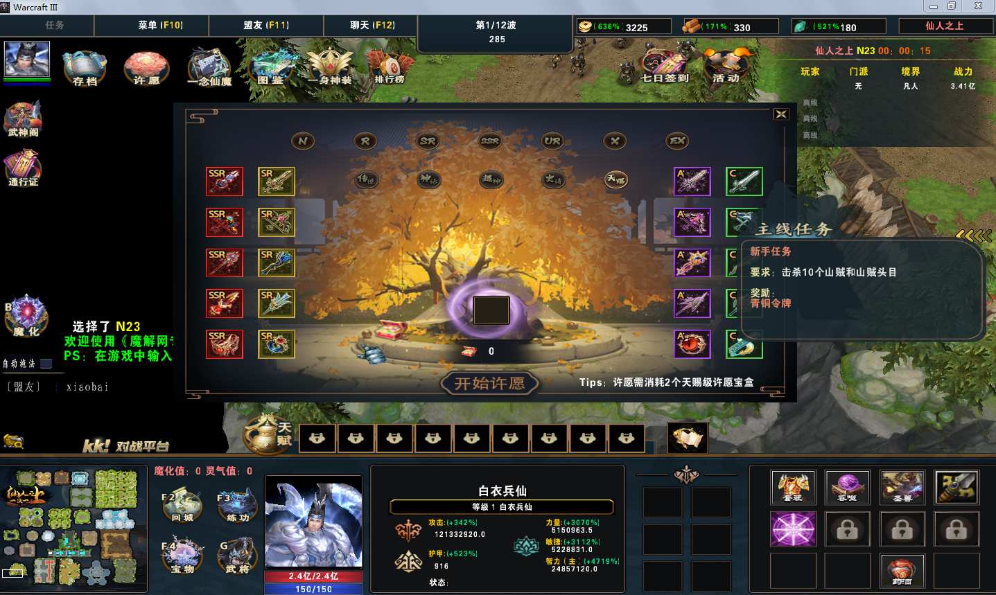 地图名字:仙人之上1.0.142地图下载+全商城特权+全存档+隐藏英雄+无CD+指令功能