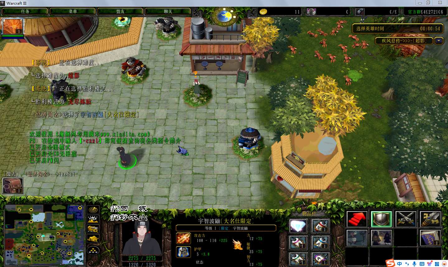 地图名字:疾风忍传4.6.4地图下载+赞助特权+隐藏英雄+无CD+指令功能