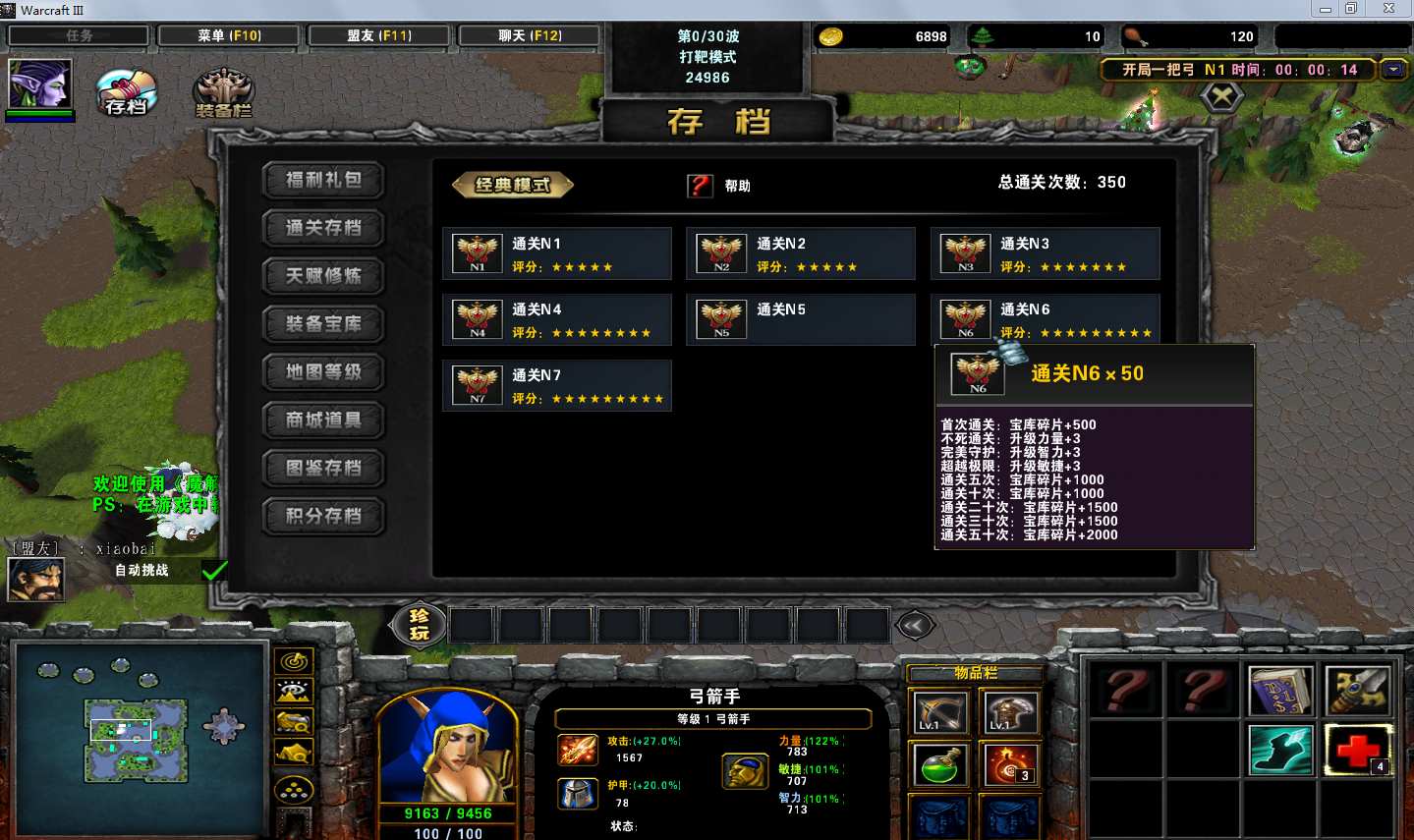 地图名字:开局一把弓1.0.24地图下载+全商城特权+全存档+无CD+指令功能