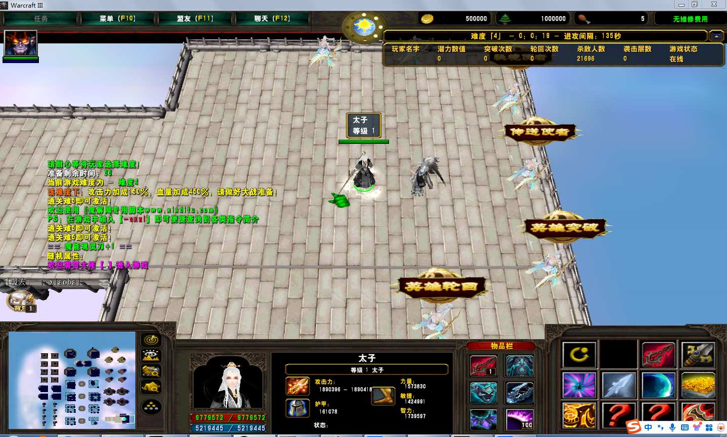 | 技能菜单【光环类技能】 | 自动化菜单【自动加钱木,提升英雄三围】 |