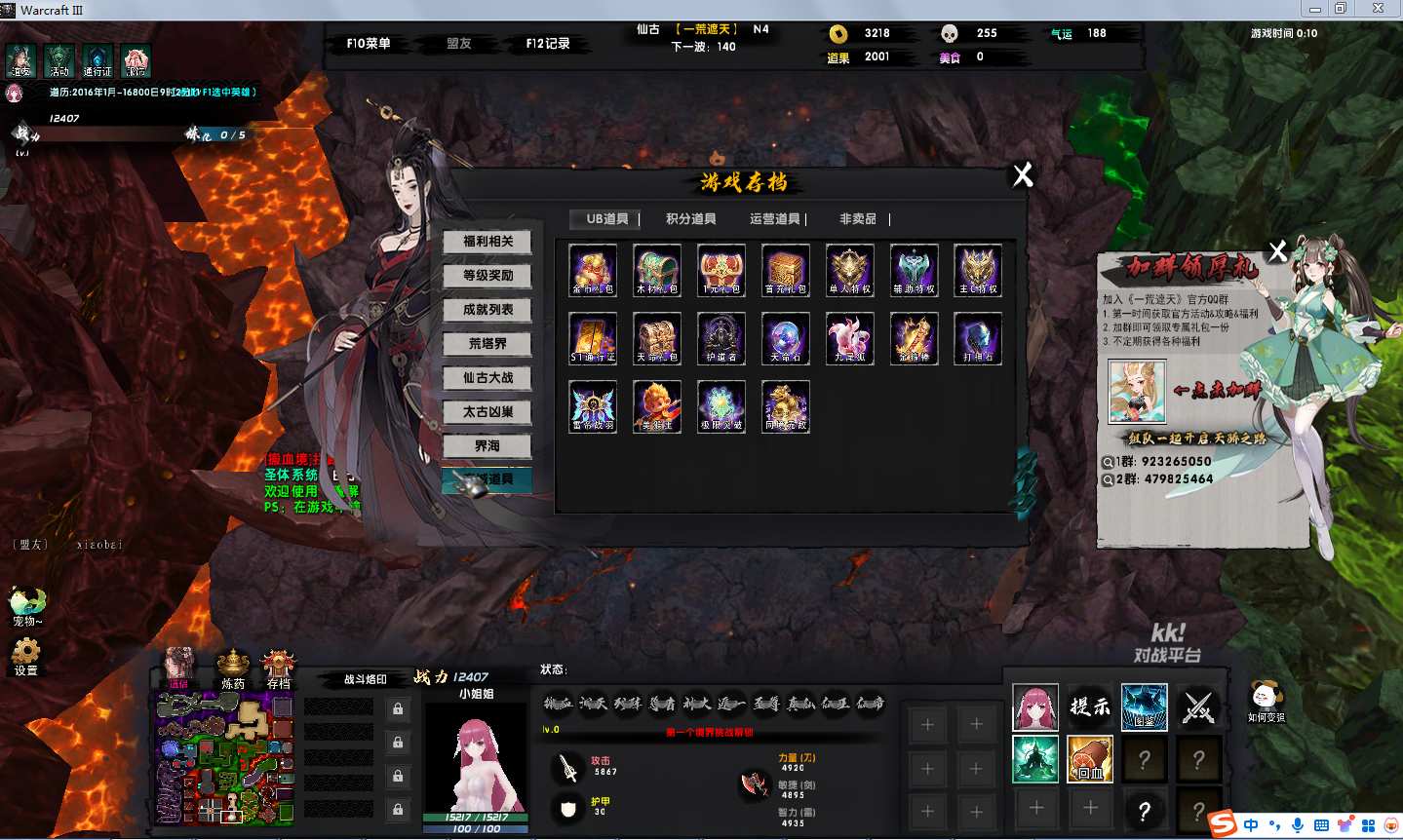 | 技能菜单【光环类技能】 | 自动化菜单【自动加钱木,提升英雄三围】 |