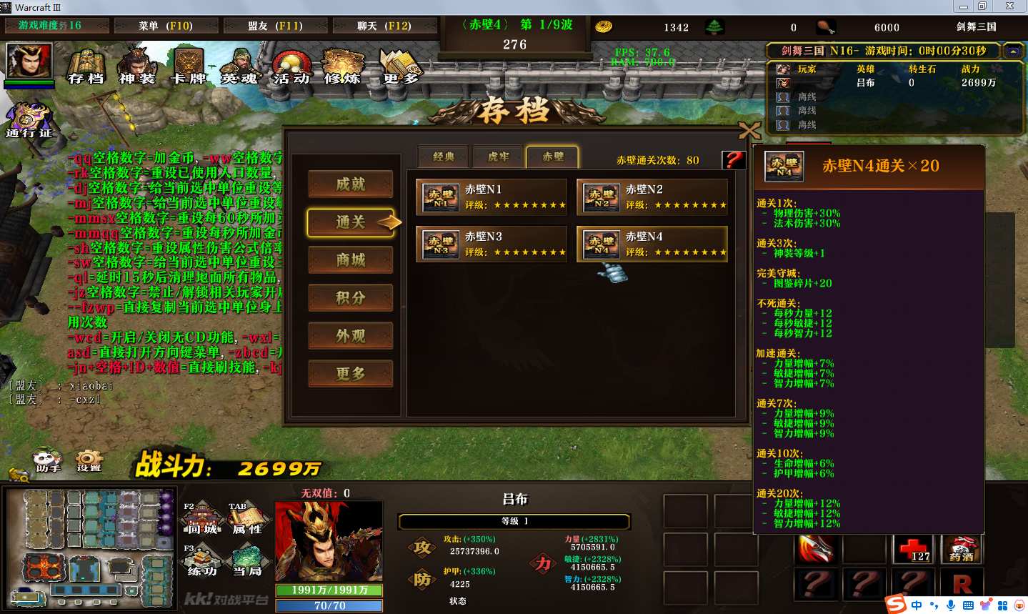 地图名字:剑舞三国1.0.101地图下载+全商城特权+全存档+隐藏英雄+无CD+指令功能