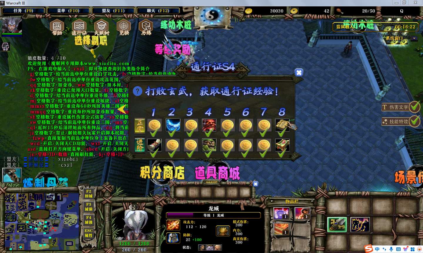 地图名字:决战江湖1.7.49地图下载+全商城特权+全存档+隐藏英雄+无CD+指令功能