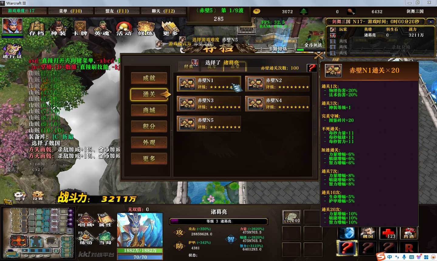 地图名字:剑舞三国1.0.103地图下载+全商城特权+全存档+隐藏英雄+无CD+指令功能