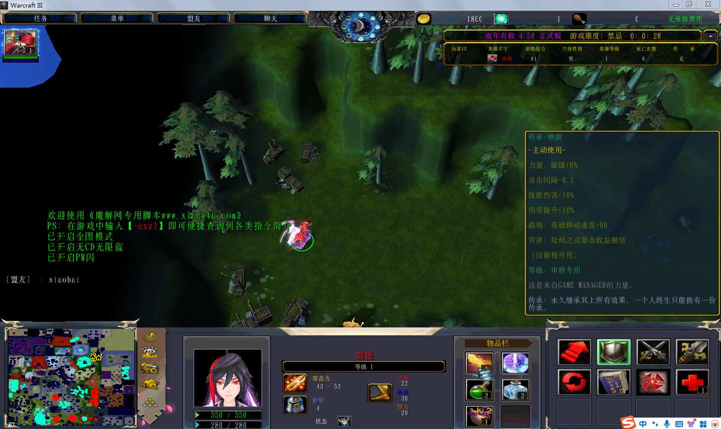 夜年有歌4.5.8地图下载+全商城特权+全存档+隐藏英雄+无CD+指令功能: