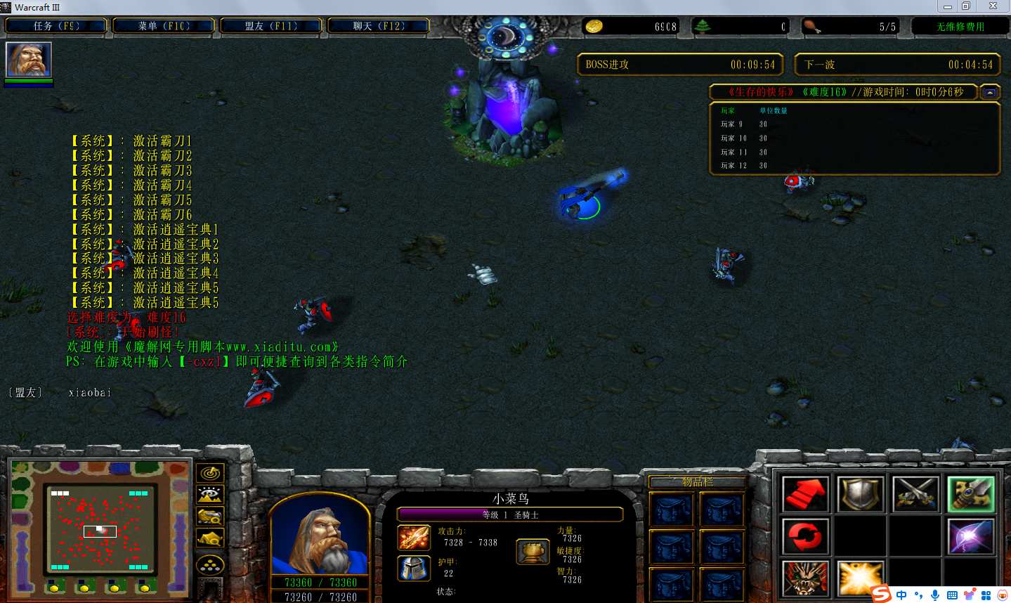 | 技能菜单【光环类技能】 | 自动化菜单【自动加钱木,提升英雄三围】 |