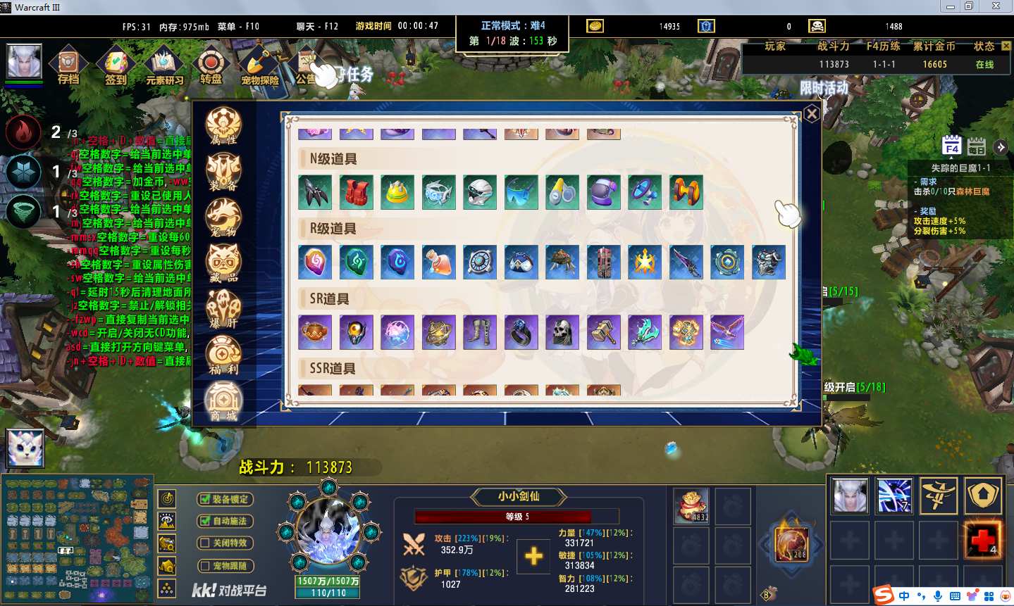 自动化菜单【自动加钱木,提升英雄三围】