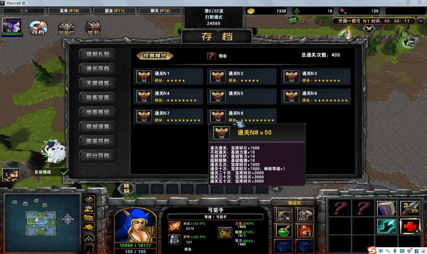 地图名字:开局一把弓1.0.33地图下载+全商城特权+全存档+无CD+指令功能