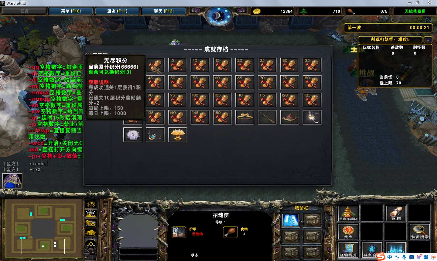 地图名字:割草打妖怪1.0.15地图下载+全商城特权+全存档+无CD+指令功能