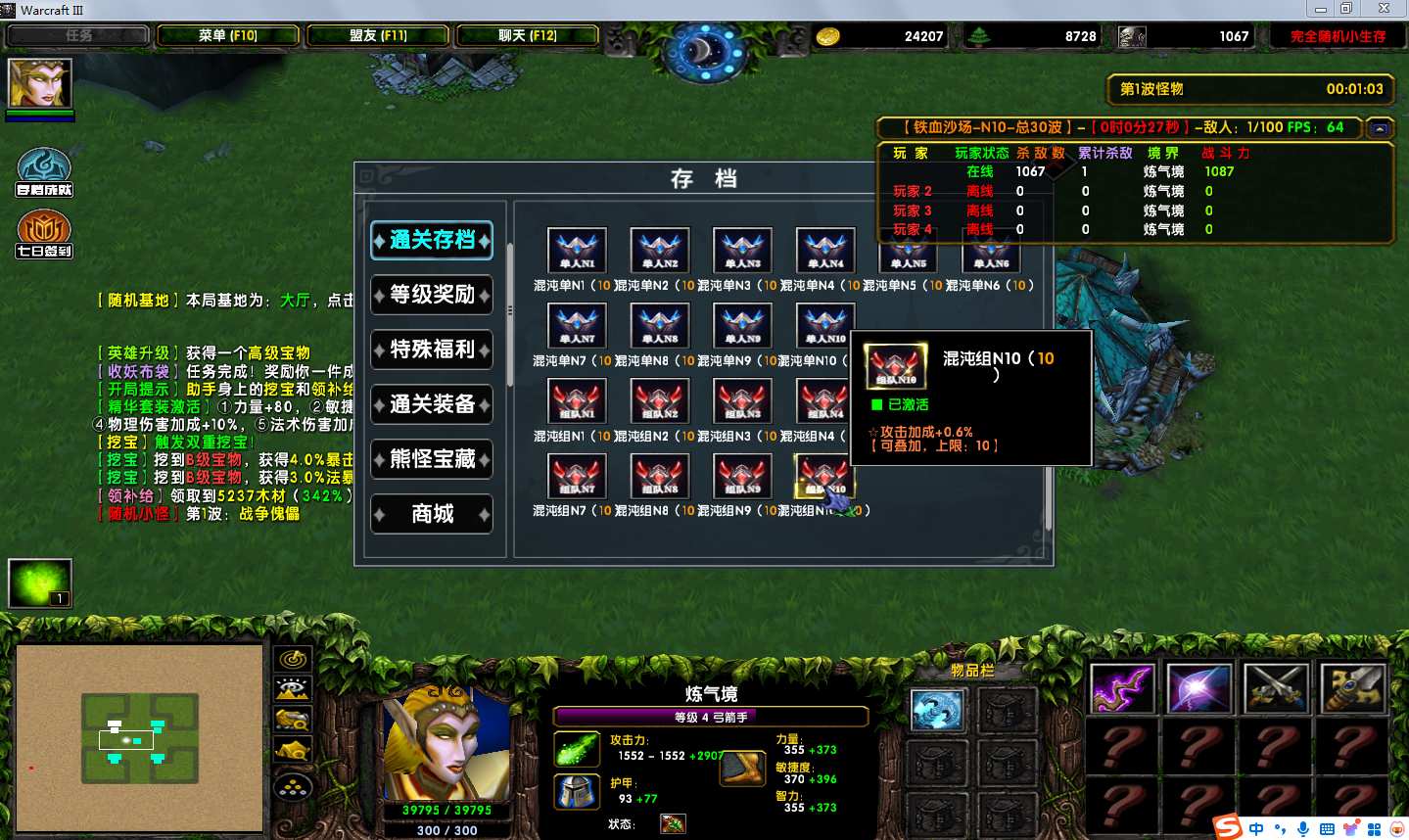地图名字:完全随机小生存1.0.22地图下载+全商城特权+全存档+无CD+指令功能
