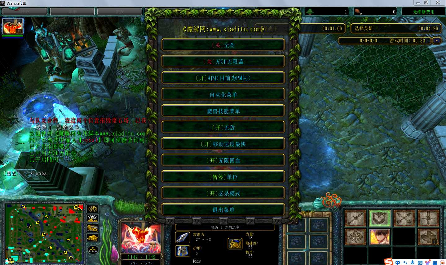 | 技能菜单【光环类技能】 | 自动化菜单【自动加钱木,提升英雄三围】 |