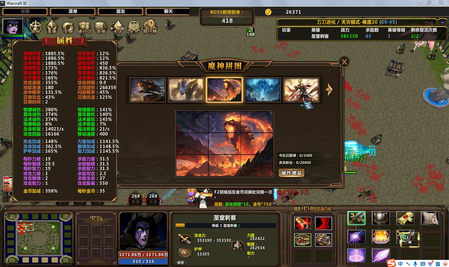 地图名字:刀刀进化1.3.30地图下载+全商城特权+全存档+隐藏英雄+无CD+指令功能