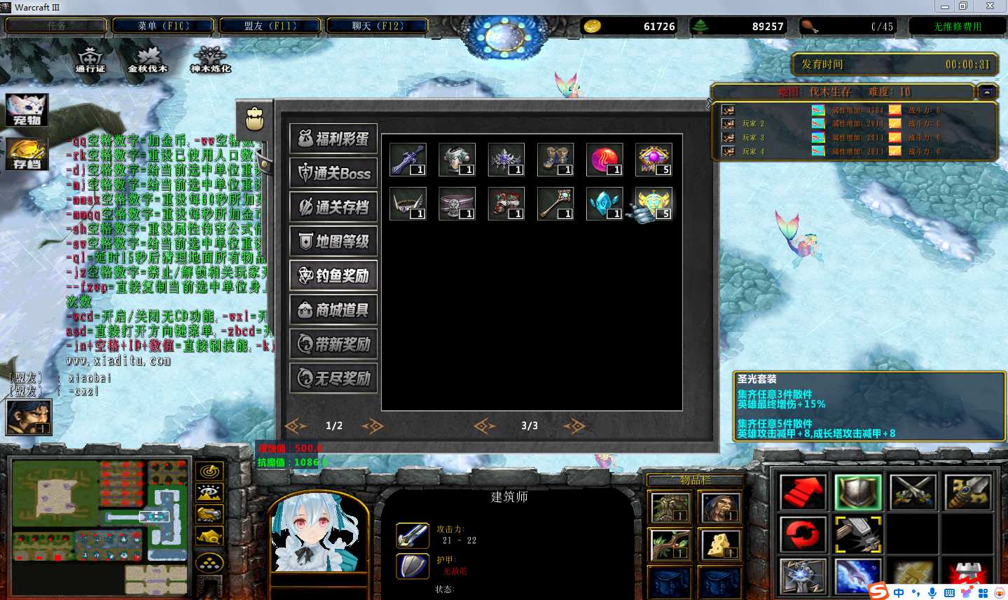 地图名字:伐木生存1.3.8地图下载+全商城特权+全存档+无CD+指令功能