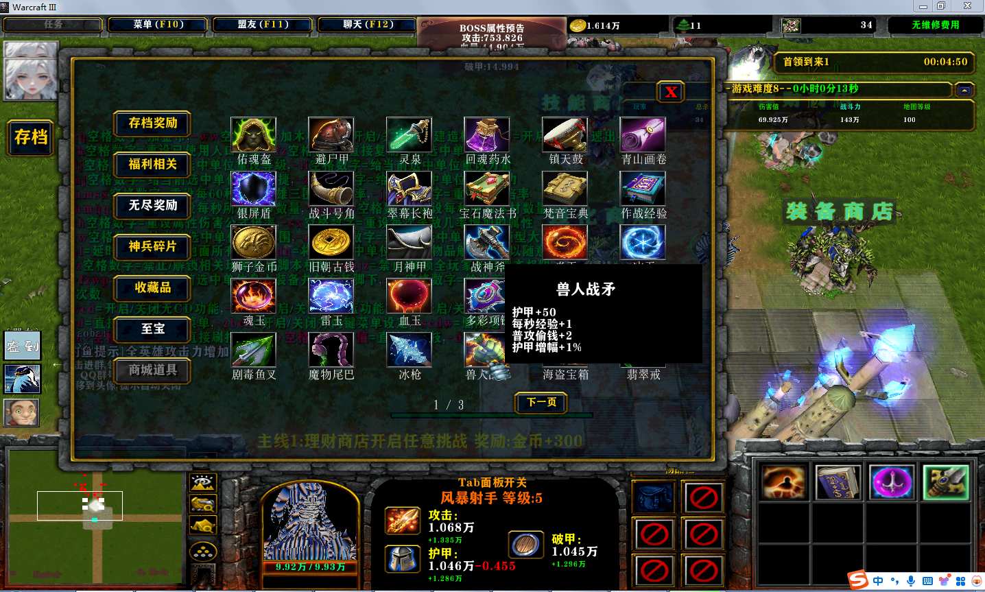 | 技能菜单【光环类技能】 | 自动化菜单【自动加钱木,提升英雄三围】 |