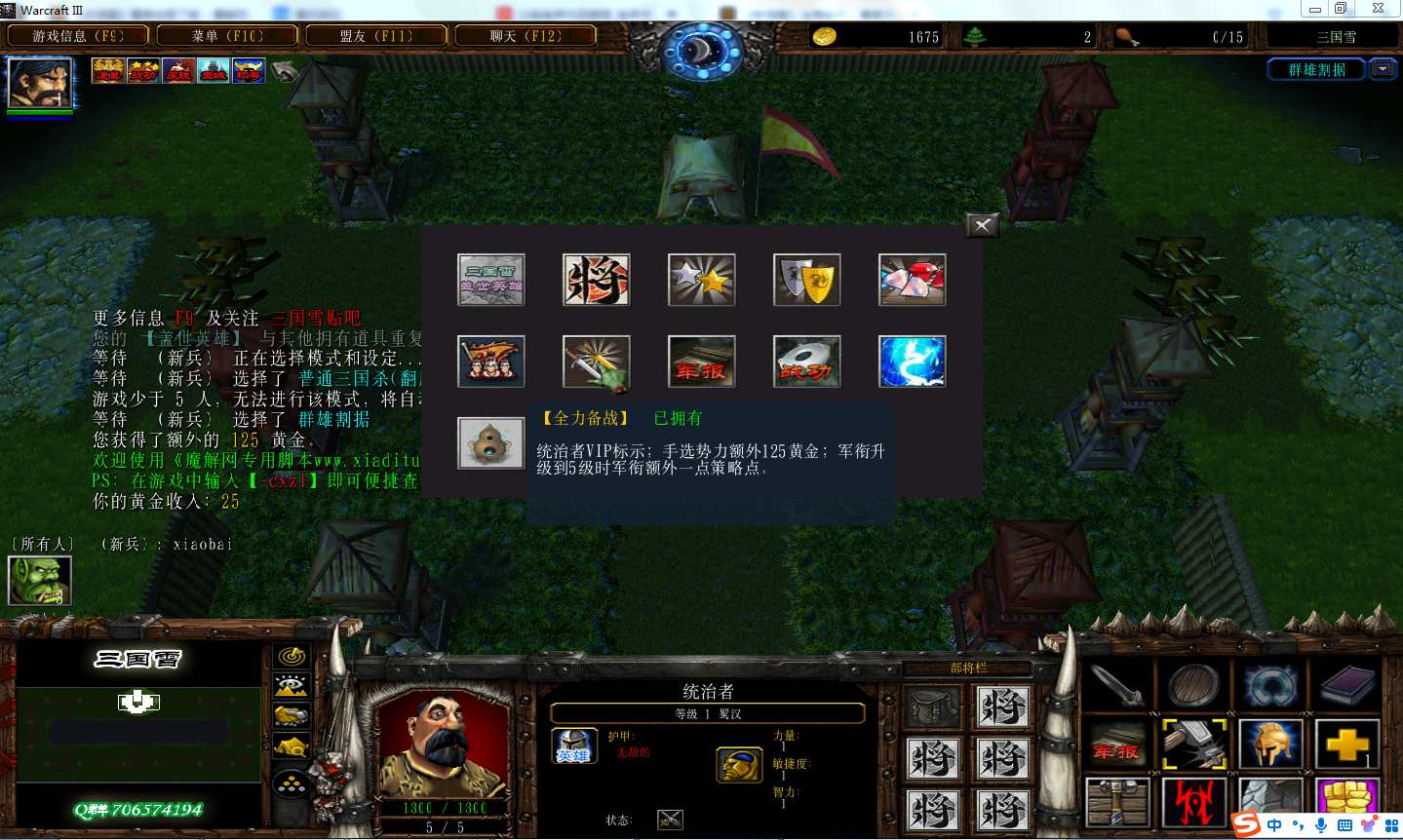 | 技能菜单【光环类技能】 | 自动化菜单【自动加钱木,提升英雄三围】 |