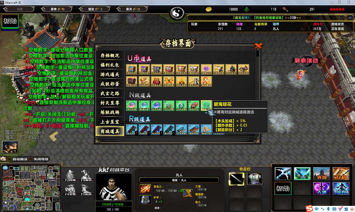 | 技能菜单【光环类技能】 | 自动化菜单【自动加钱木,提升英雄三围】 |