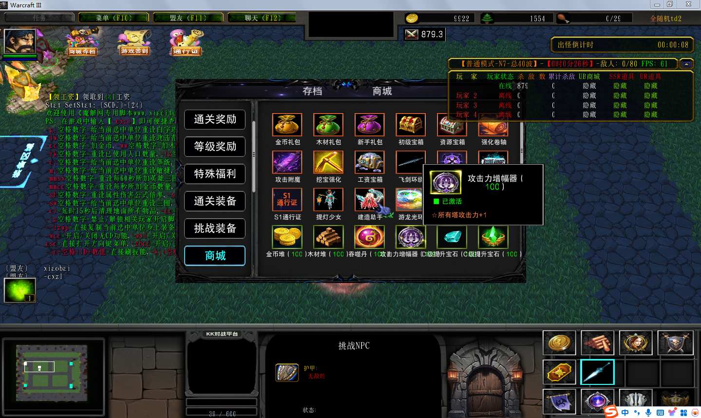 | 可设置每秒增加钱木数量 | 可设置每秒提升英雄三围倍率 |