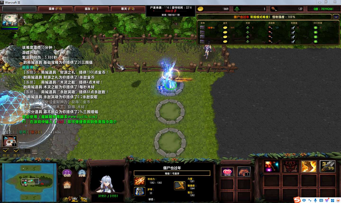 | 技能菜单【光环类技能】 | 自动化菜单【自动加钱木,提升英雄三围】 |