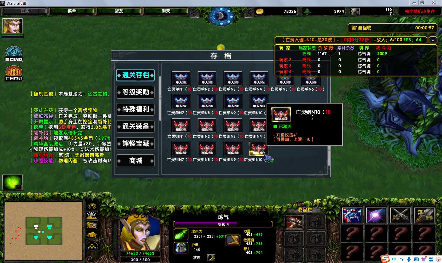 地图名字:完全随机小生存1.0.32地图下载+全商城特权+全存档+无CD+指令功能