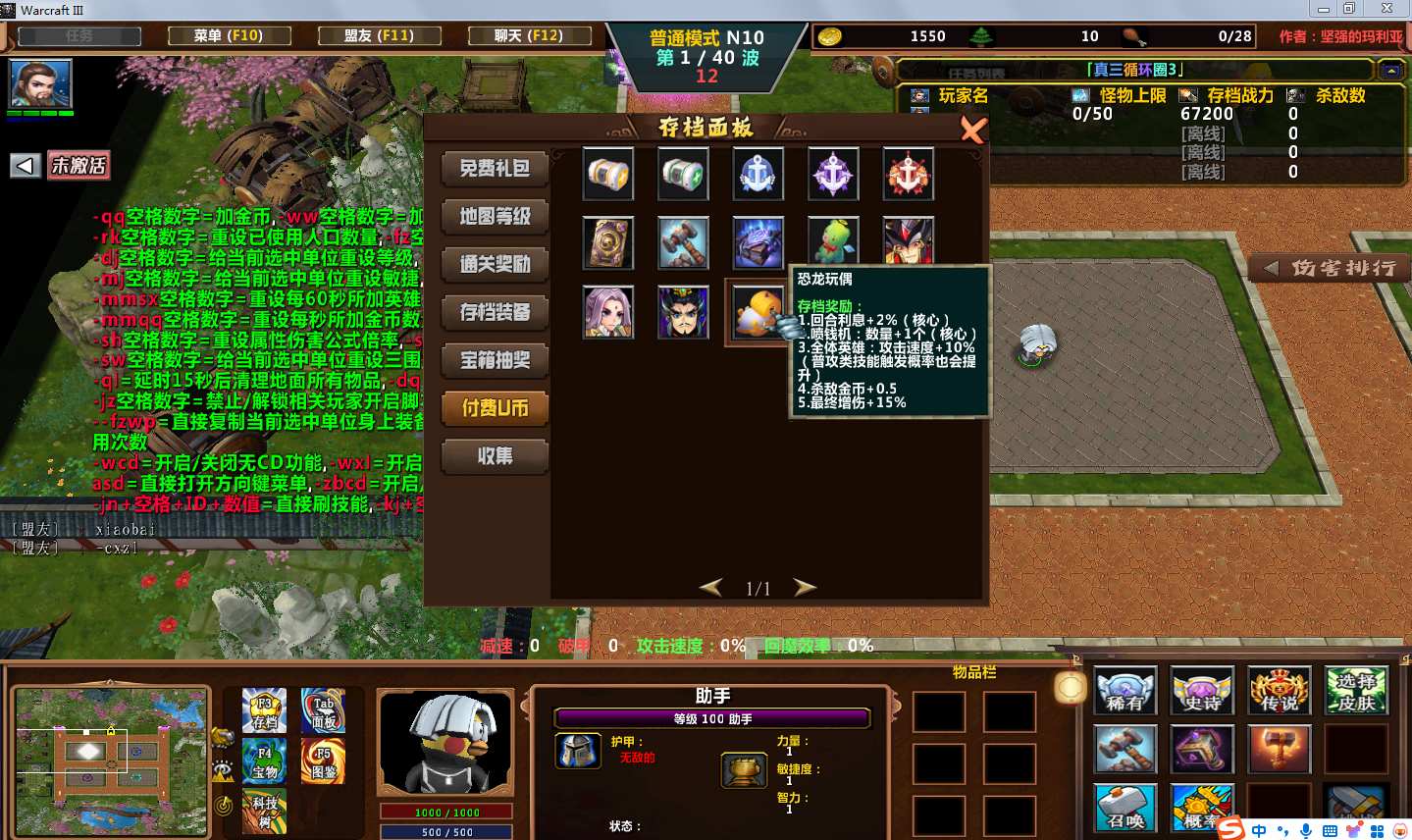| 技能菜单【光环类技能】 | 自动化菜单【自动加钱木,提升英雄三围】 |