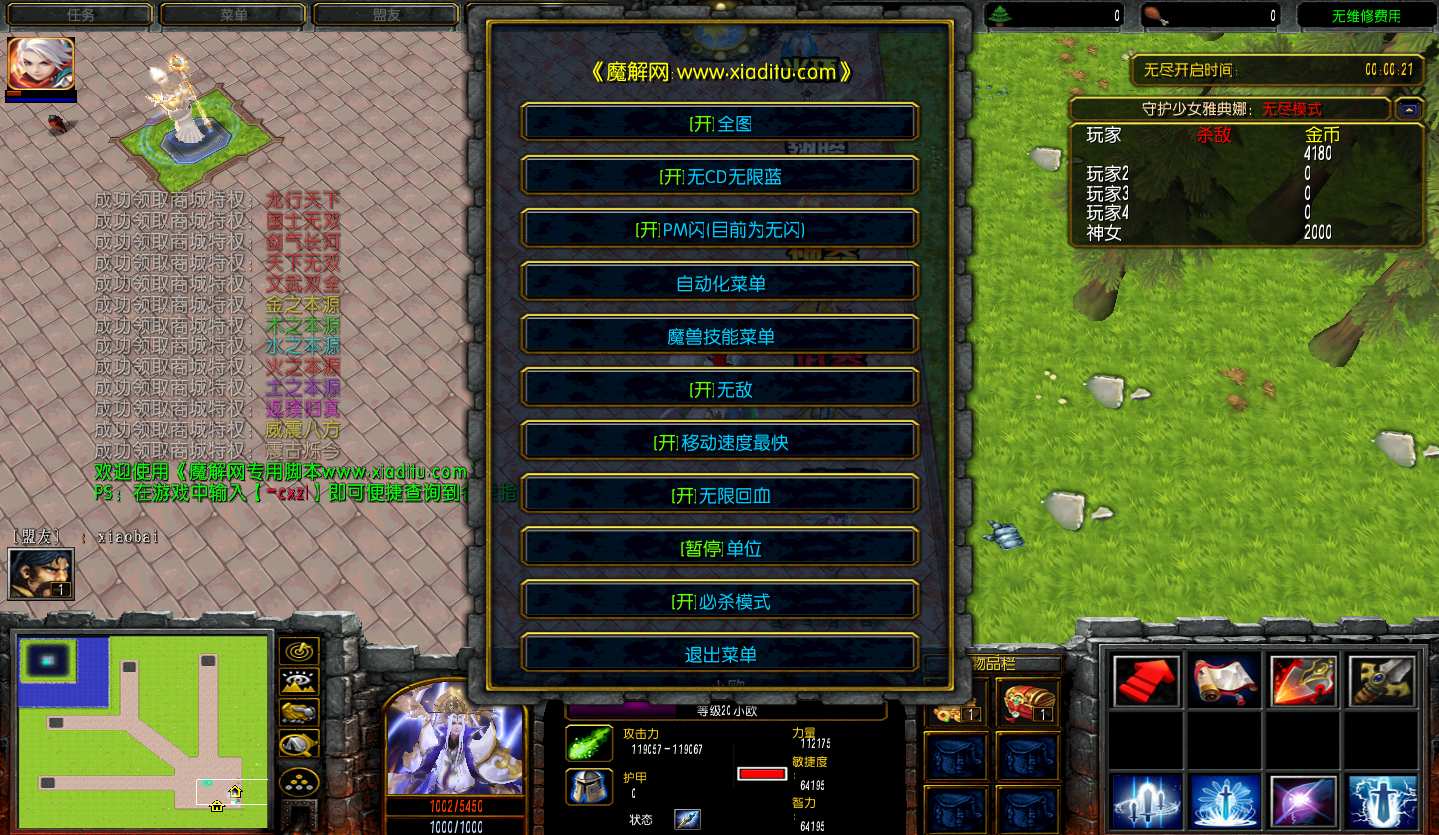 | 技能菜单【光环类技能】 | 自动化菜单【自动加钱木,提升英雄三围】 |