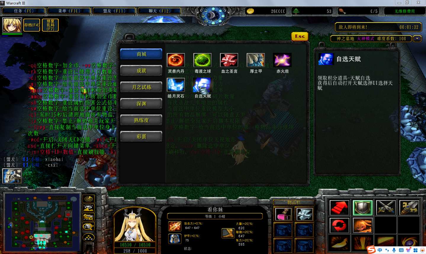 地图名字:神之墓地2.9.53地图下载+全商城特权+全存档+隐藏英雄+无CD+指令功能