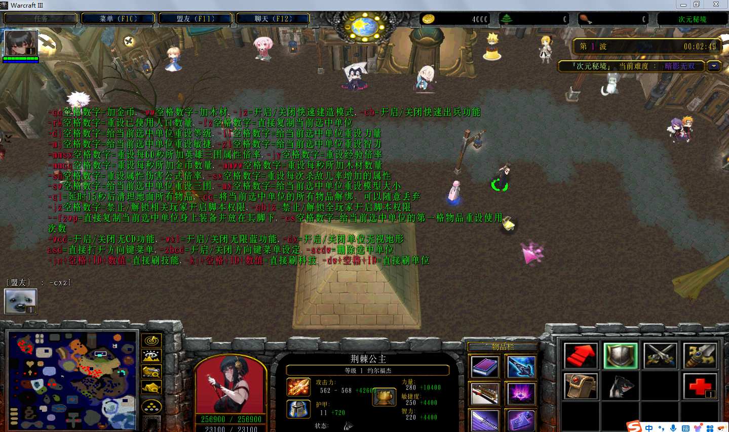 地图名字:次元秘境4.4.1地图下载+全商城特权+全存档+隐藏英雄+无CD+指令功能