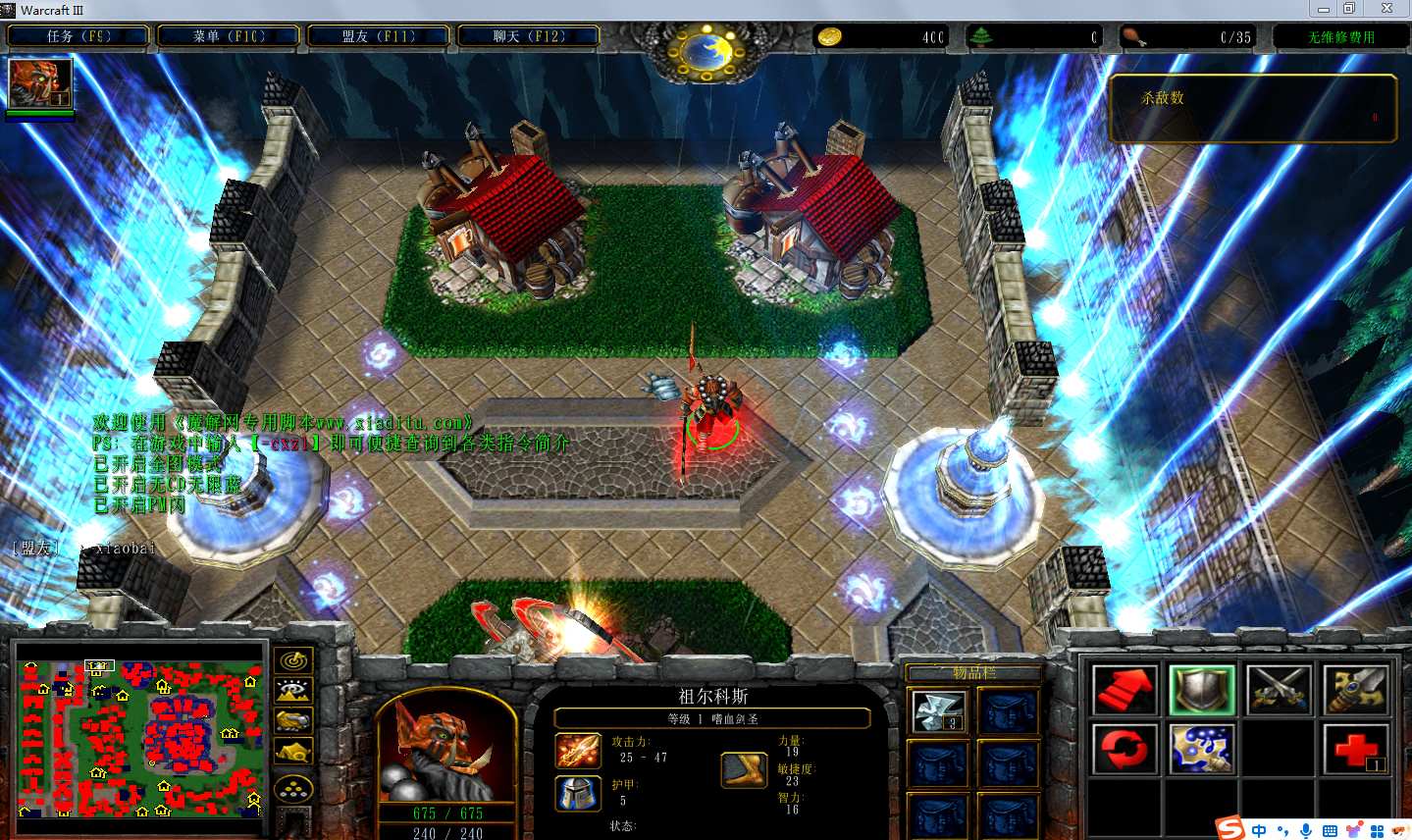 | 技能菜单【光环类技能】 | 自动化菜单【自动加钱木,提升英雄三围】 |